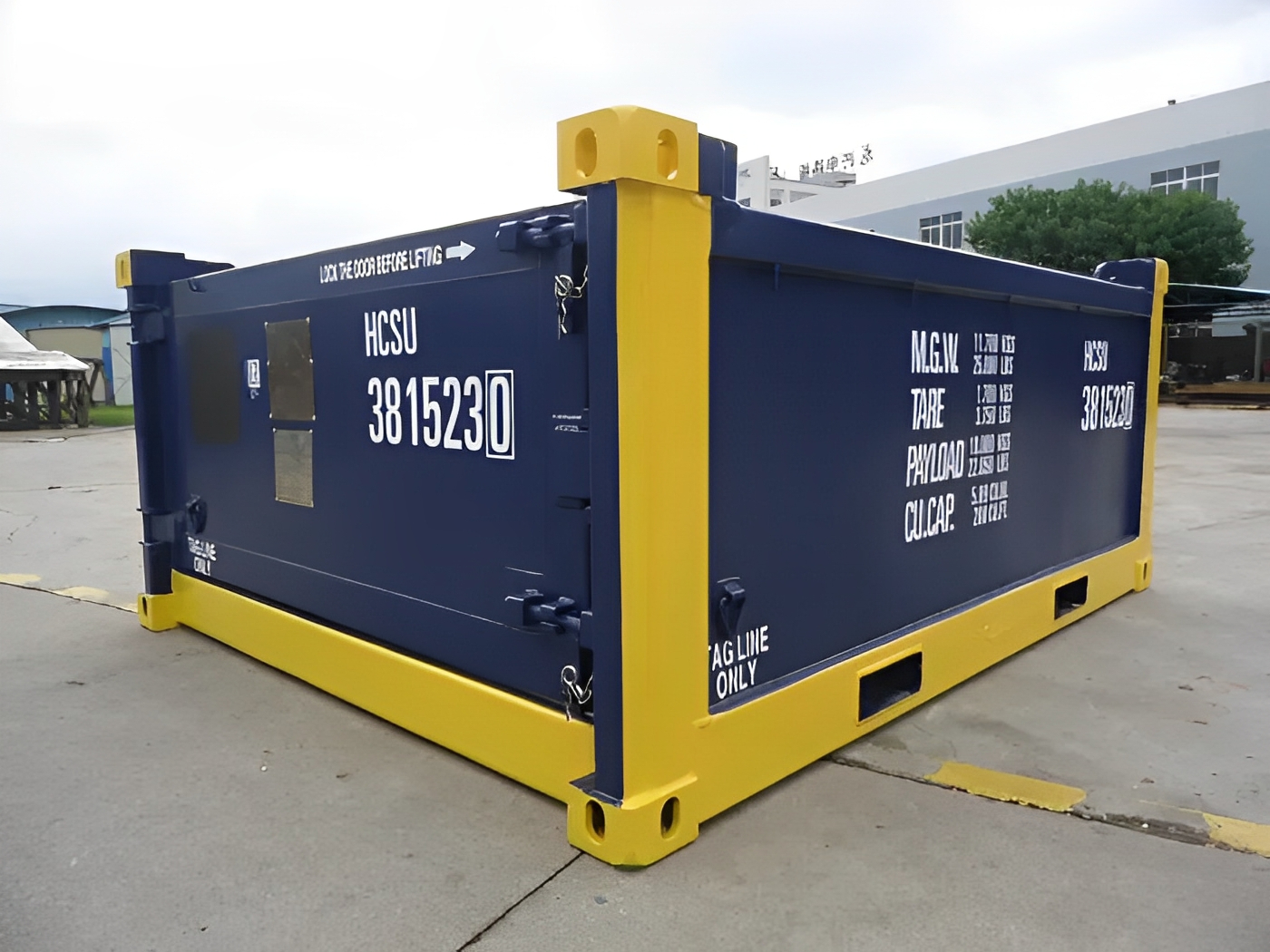 Der 10 Fuß Offshore Container DNV 2.7-1 Half Height Open Top ist halb so hoch wie der Standardcontainer und hat kein Stahldach. Er ist mit einer einflügeligen Stahltür ausgestattet. Die Container sind stapelbar und mit zertifizierten Hebebändern erhältlich.