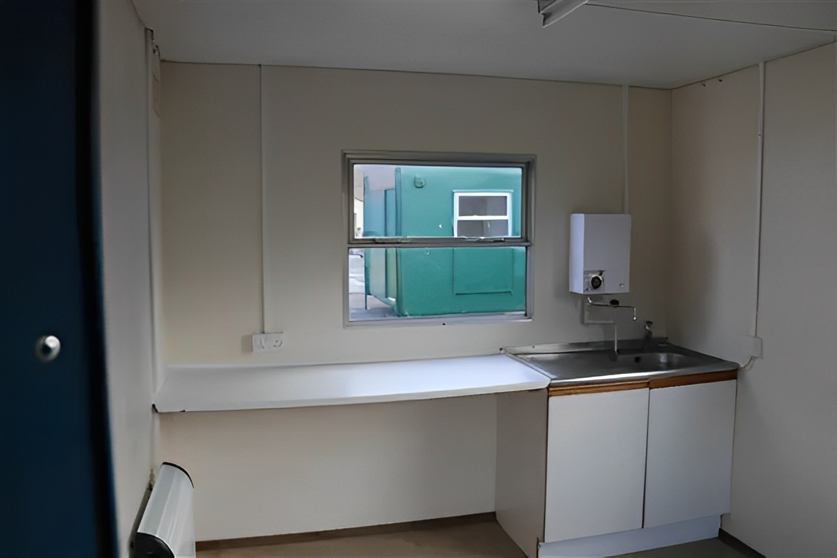 Dank seiner robusten Stahlkonstruktion und der drei Schiebefenster mit abschließbaren Stahlrollläden bietet diese Einheit maximale Sicherheit und Ruhe und gleichzeitig eine saubere, komfortable Umgebung für Pausen, Mahlzeiten oder leichte Küchenarbeiten.