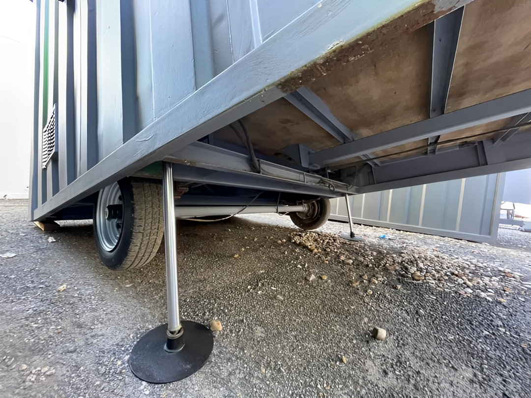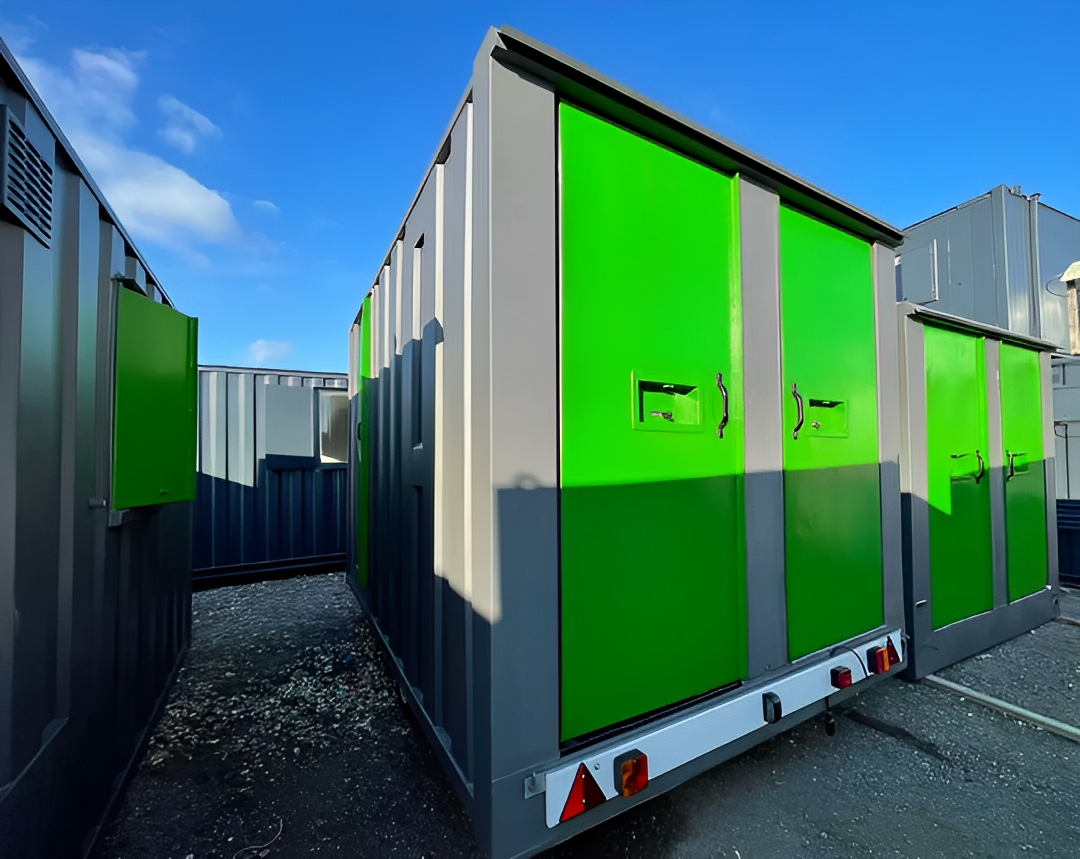 Diese mobile Sanitärkabine eignet sich ideal für Baustellen, Versorgungsprojekte und netzferne Standorte und ist   dank ihres  ferngesteuerten Hydrauliksystems einfach aufzubauen  und  von einer Person in weniger als drei Minuten einsatzbereit .