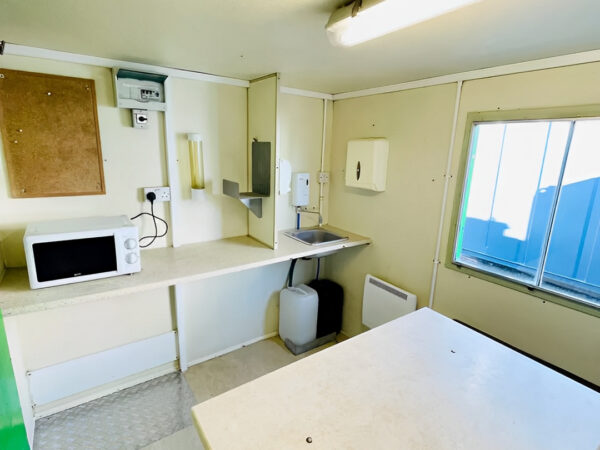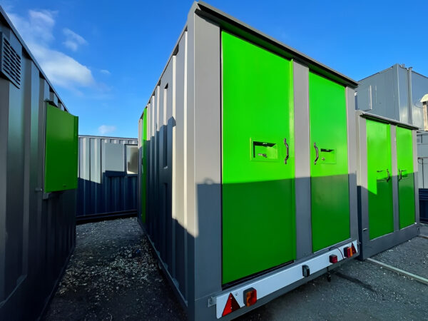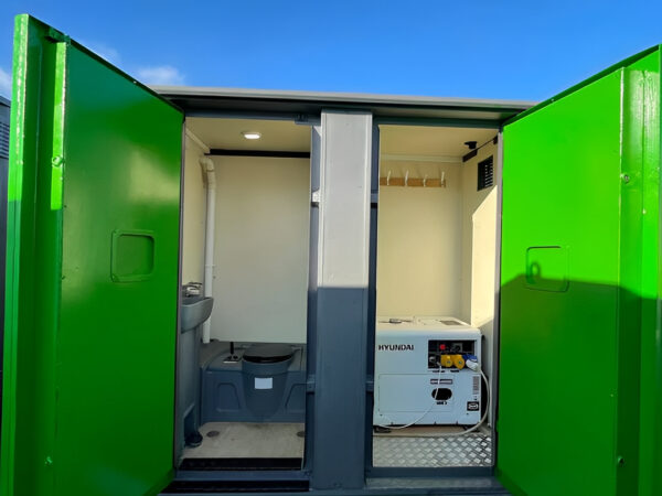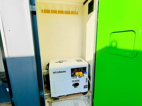 Verbessern Sie Ihre Baustelleneinrichtungen mit unserer 12 x 7,5 Fuß großen, fahrbaren mobilen Sanitäranlage mit Dieselgenerator , die mit einem  brandneuen 5-kVA-Dieselgenerator ausgestattet ist . Diese kompakte, fahrbare Einheit bietet alles, was Sie für abgelegene Arbeitsumgebungen benötigen, einschließlich Kantine, Toilette, Trockenraum und Stromversorgung – alles in einem autarken, straßentauglichen Design.