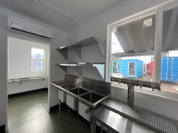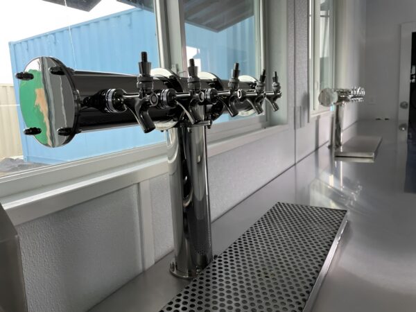 Diese High-Cube-Einheit verfügt über einen speziell eingerichteten Fasslagerraum , einen geräumigen Bar- und Servierbereich sowie einen praktischen Ticketschalter – allesamt ausgestattet mit professionellen Geräten, Edelstahlarmaturen, integrierter Kühlung und ausziehbaren Serviertheken. Von den eleganten, vertikal zu öffnenden Fenstern über die Epoxidharzböden bis hin zur LED-Beleuchtung ist jeder Zentimeter auf effizienten Service und ansprechendes Design ausgelegt.